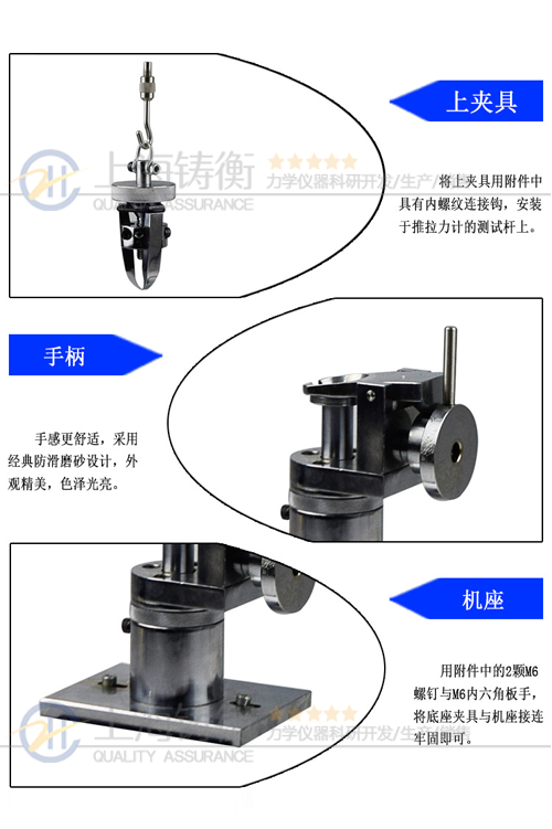 上海鑄衡生產的高精度鈕扣拉力測試儀可配置NK及HF推拉力計專用夾具,我司高精度鈕扣拉力測試儀專用于測量鈕扣的扣合力或脫離衣物破壞力。檢測鈕扣、按鈕等固定強度是很重要的一項標準,尤其是在嬰兒和兒童服裝設計及制造中最為重要。在鈕扣固定裝飾件上使用一定力的測量需要通過力度儀器來記錄。